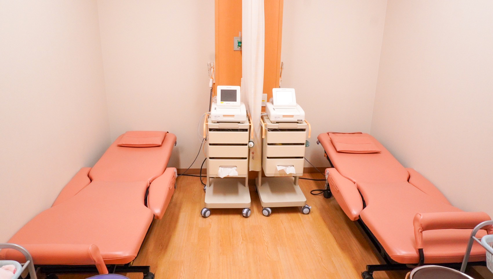 LDR室では、陣痛中から出産、そして産後2時間まで同じお部屋で過ごしていただくことが可能です。室内にトイレや洗面所もございます。