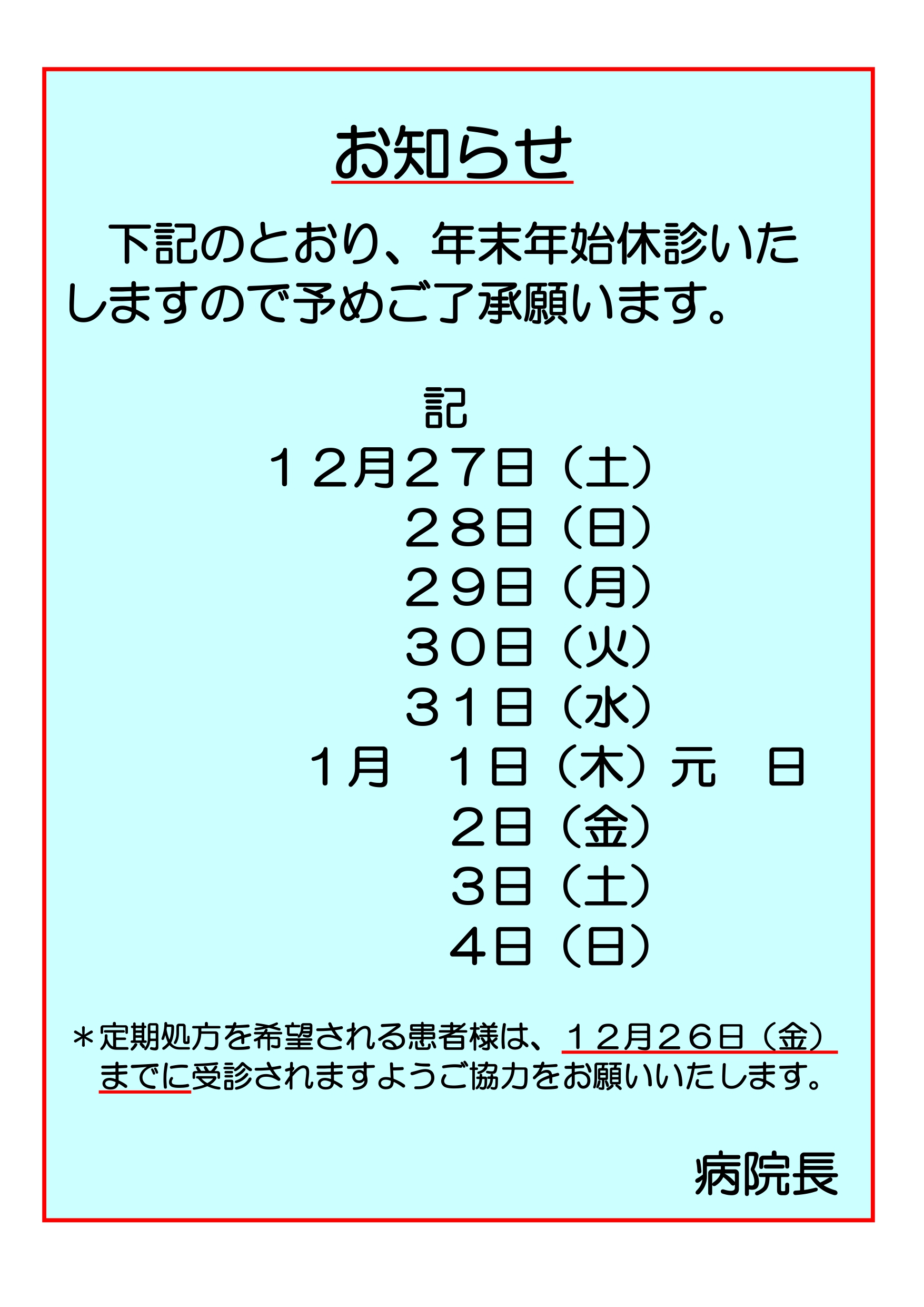 • 年末年始休診のお知らせ