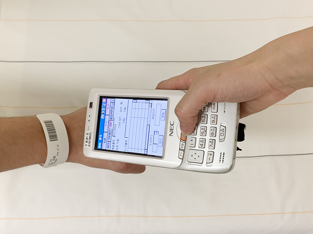 医療の安全性向上を目的として、入院患者さんに「バーコード付のIDバンド」を手首に装着させていただき、「患者認証システム」を導入しております。
